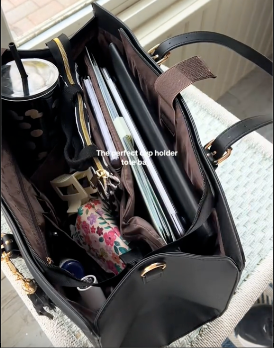 This tote gives you room for all your essentials without the bulk. From laptops to water bottles, everything stays organized in its sturdy design. Despite its size, it’s lightweight and comfortable to carry all day — proof that style and practicality go hand in hand.